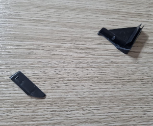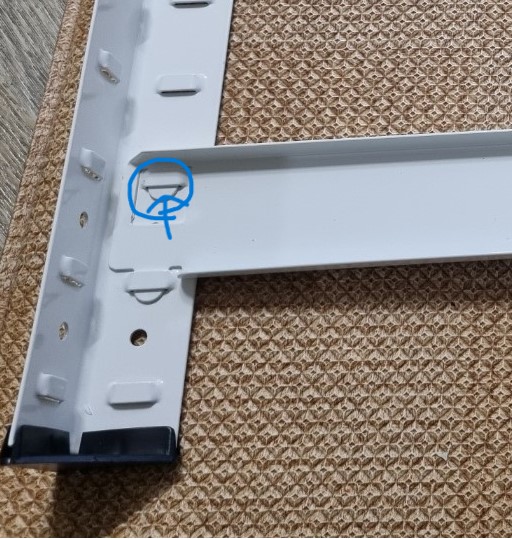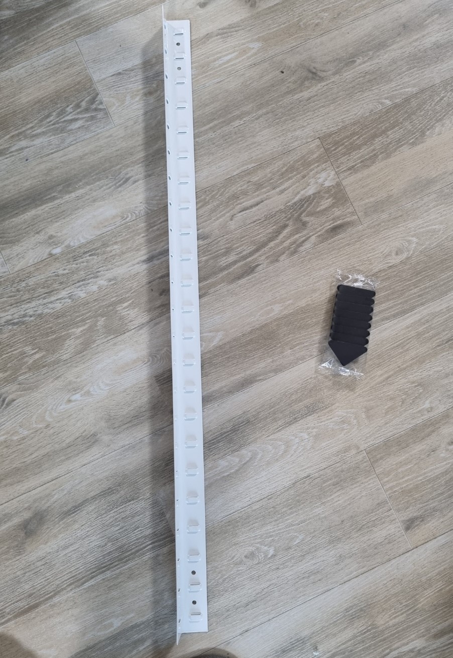 검은 색 플라스틱을 끼울때 고무망치로 잘 못 때렸더니 이렇게 쉽게 부서졌다. 이건 그냥 손으로 가볍게 끼워 주는게 맞는것 같다. 그리고 기둥에 선반 받침을 끼울때 위에 표시 된 부분이 눌려 있는 경우가 있는데 집에 있는 공구로 좀 벌려주면 쉽게 들어 간다.