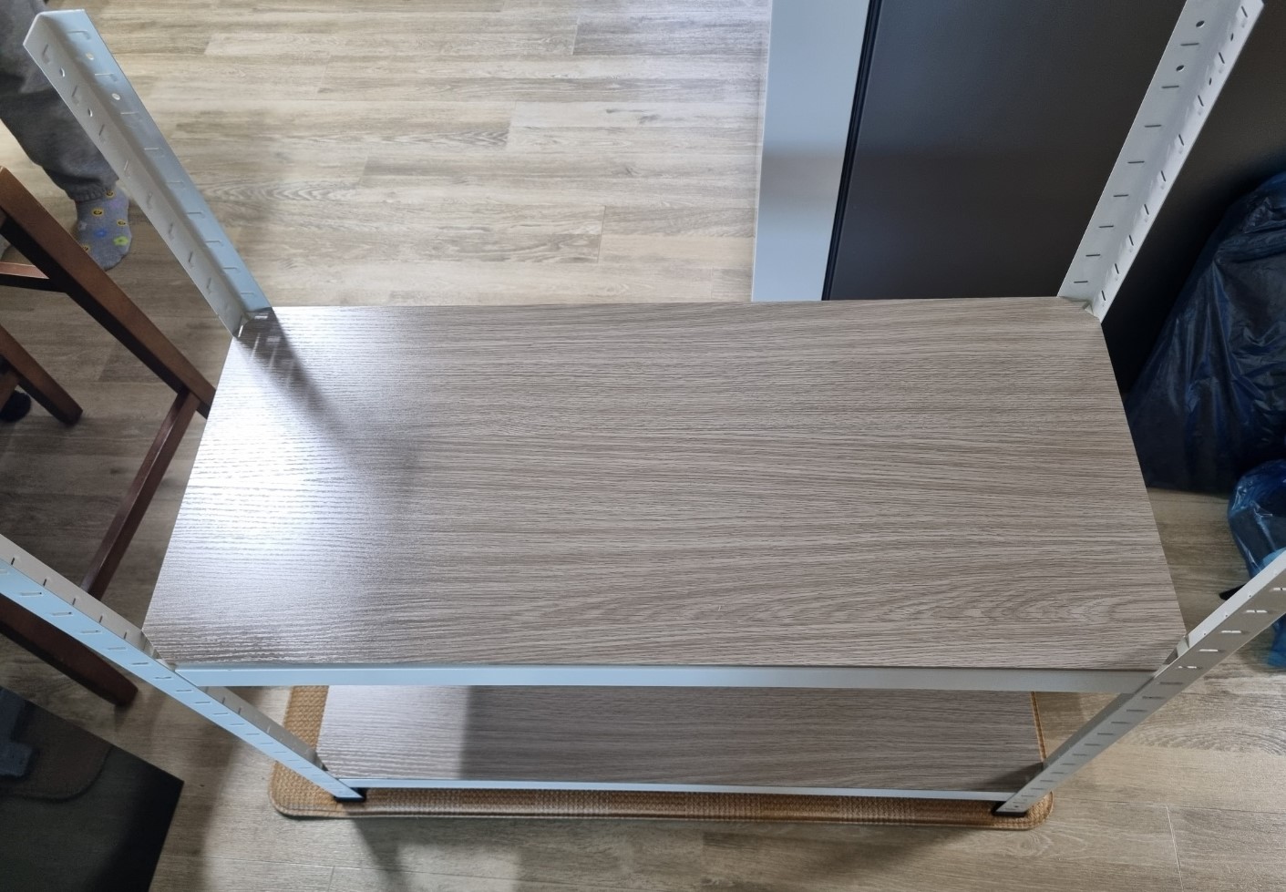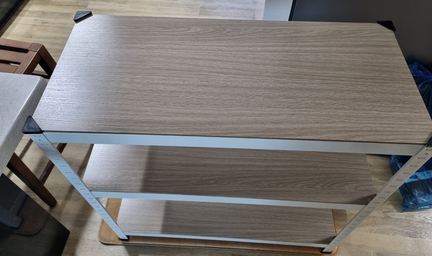 이런 식으로 내가 사용할 물건의 높이에 맞춰서 간격을 조절해서 3단까지 선반을 만들면 된다. 그리고 마지막에 검은색 플라스틱을 네 모서리에 끼워주면 끝이다.