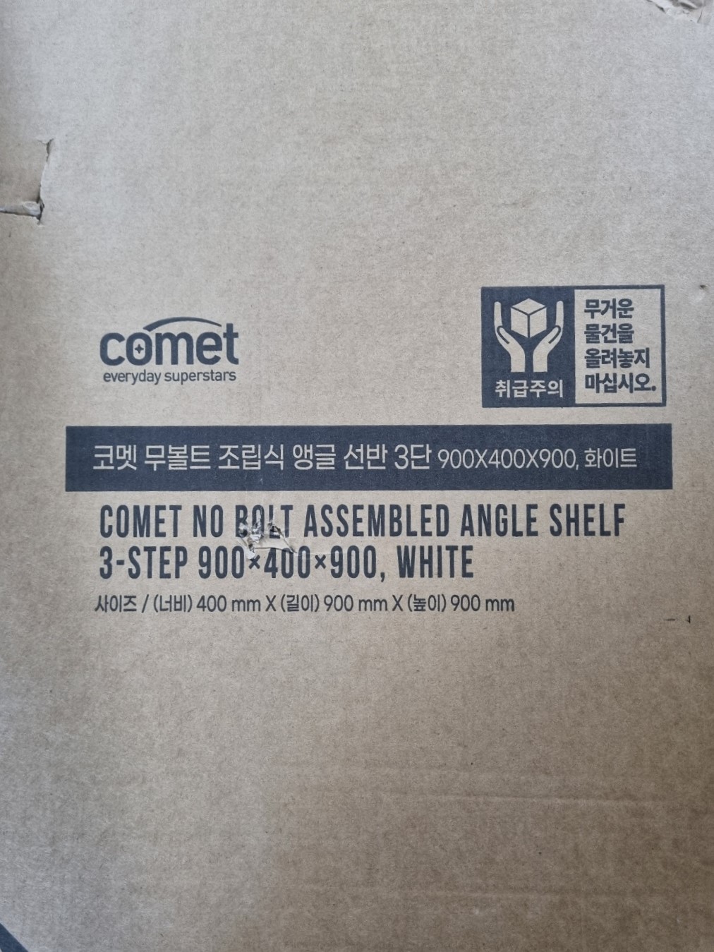내가 생각하는 길이와 높이를 찾고 가격대를 맞추다 보니 코멧 제품으로 넓이 900mm, 높이 900mm로 3단 제품을 구입 했다.