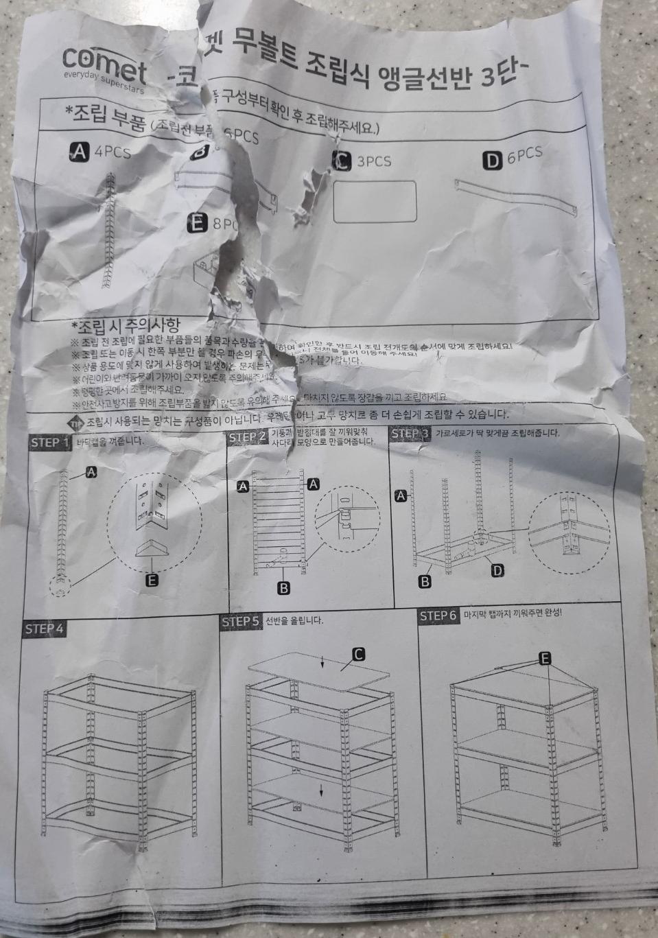 무게가 좀 있어서 인지 배송 과정에서 상자가 군데 군데 찢어져 있었고 그 때문에 설명서도 찢어져 있었다. 큰 문제는 아니기에 그냥 사용하기로 했다.