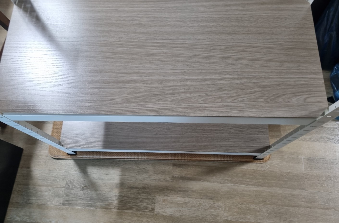 예전에 책상이 있을 때 사진이 없어서 아쉽지만 새로운 선반으로 정리하고 나니까 다니는데 불편하지 않고 여러가지 물건을 3단으로 정리할 수 있어서 깔끔해지고 맘에 든다. 나중에 수납 공간이 더 필요하면 같은 것으로 하나 더 구입해서 옆에 나란히 두어야겠다.