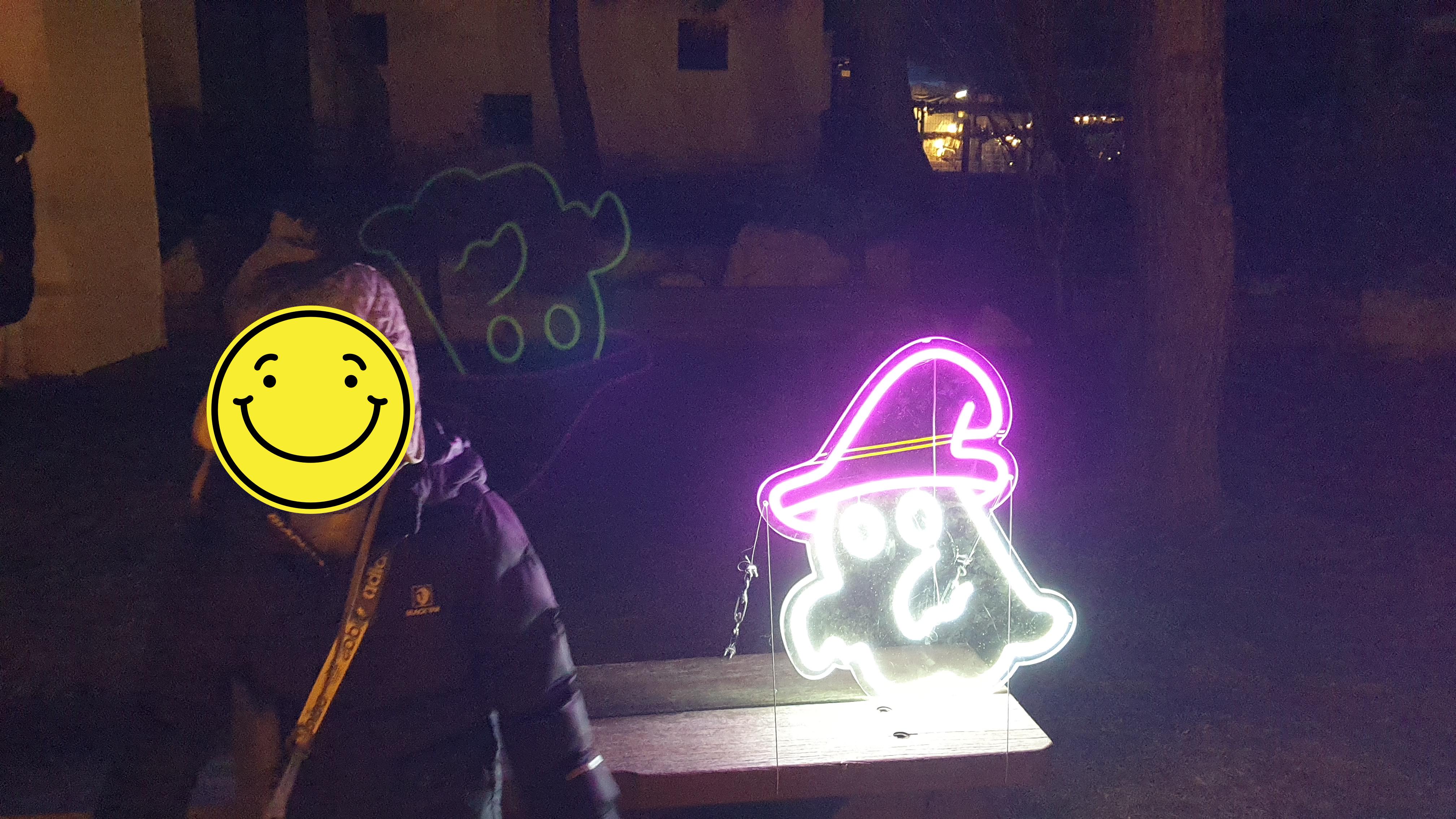 유령 조명 옆에 앉아서 사진을 찍었는데 찍은 사진을 확인하다가 깜짝 놀랐다. 거꾸로 유령이 보인다.