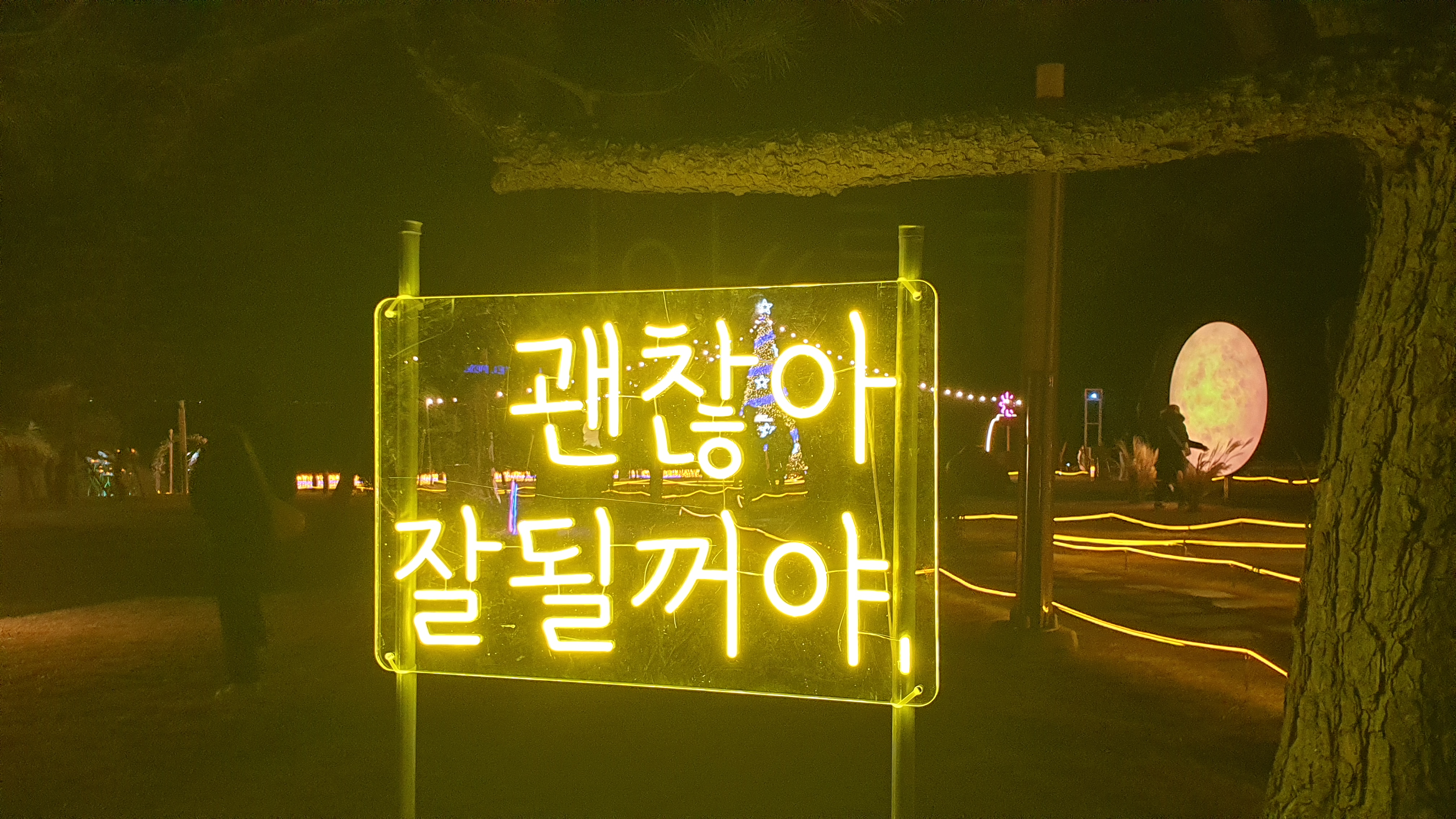 생각보다 사람들도 제법 있었고 대형 크리스마스 트리와 여러 조명들이 함께 해서 그런지 크리스마스 분위기가 느껴지는 곳이었다.
