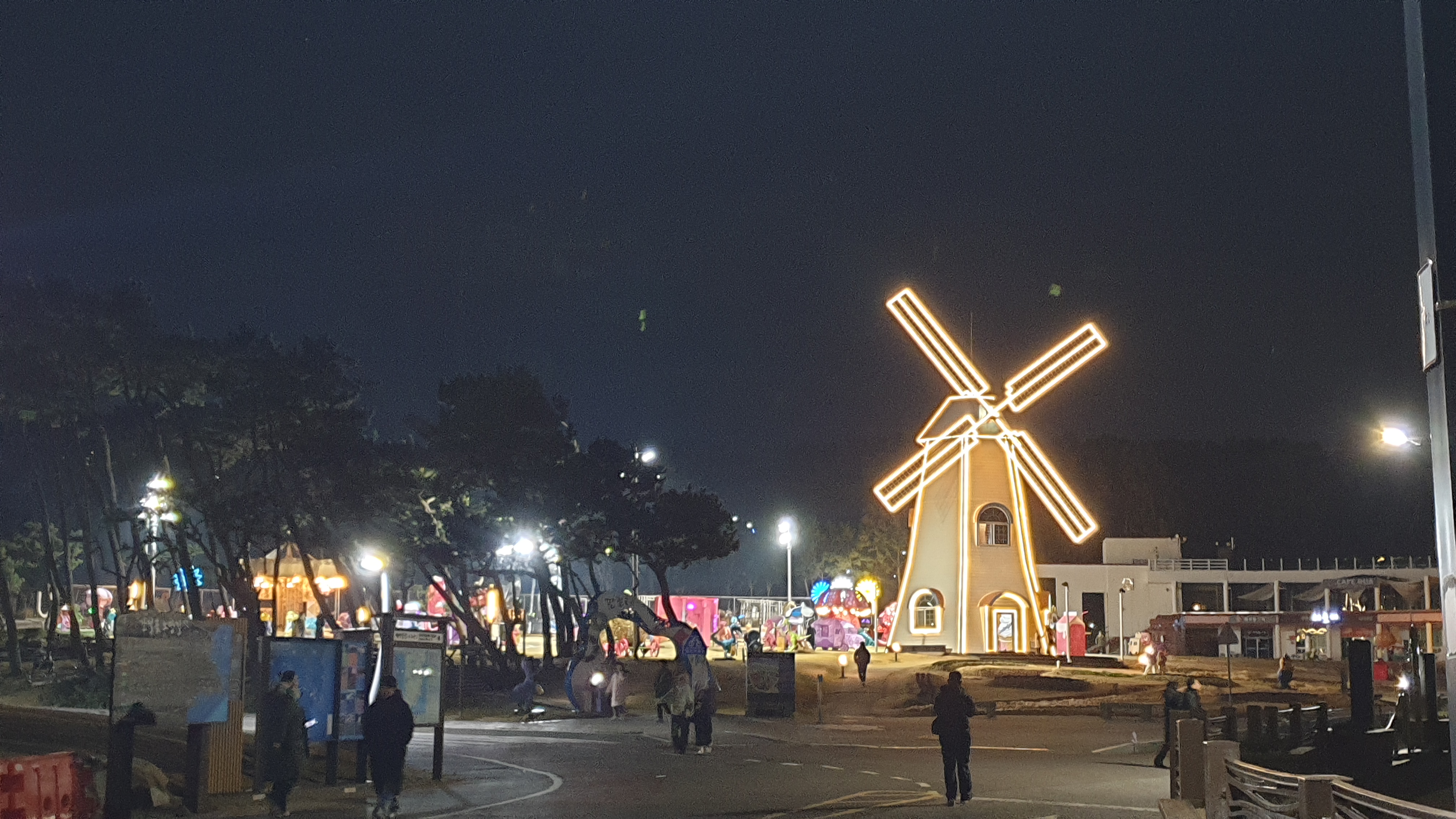 어두울 땐 처음 오는 거라 풍차에 조명이 켜지는 것도 처음 봤는데 역시 조명이 켜지니까 더 예쁘다.