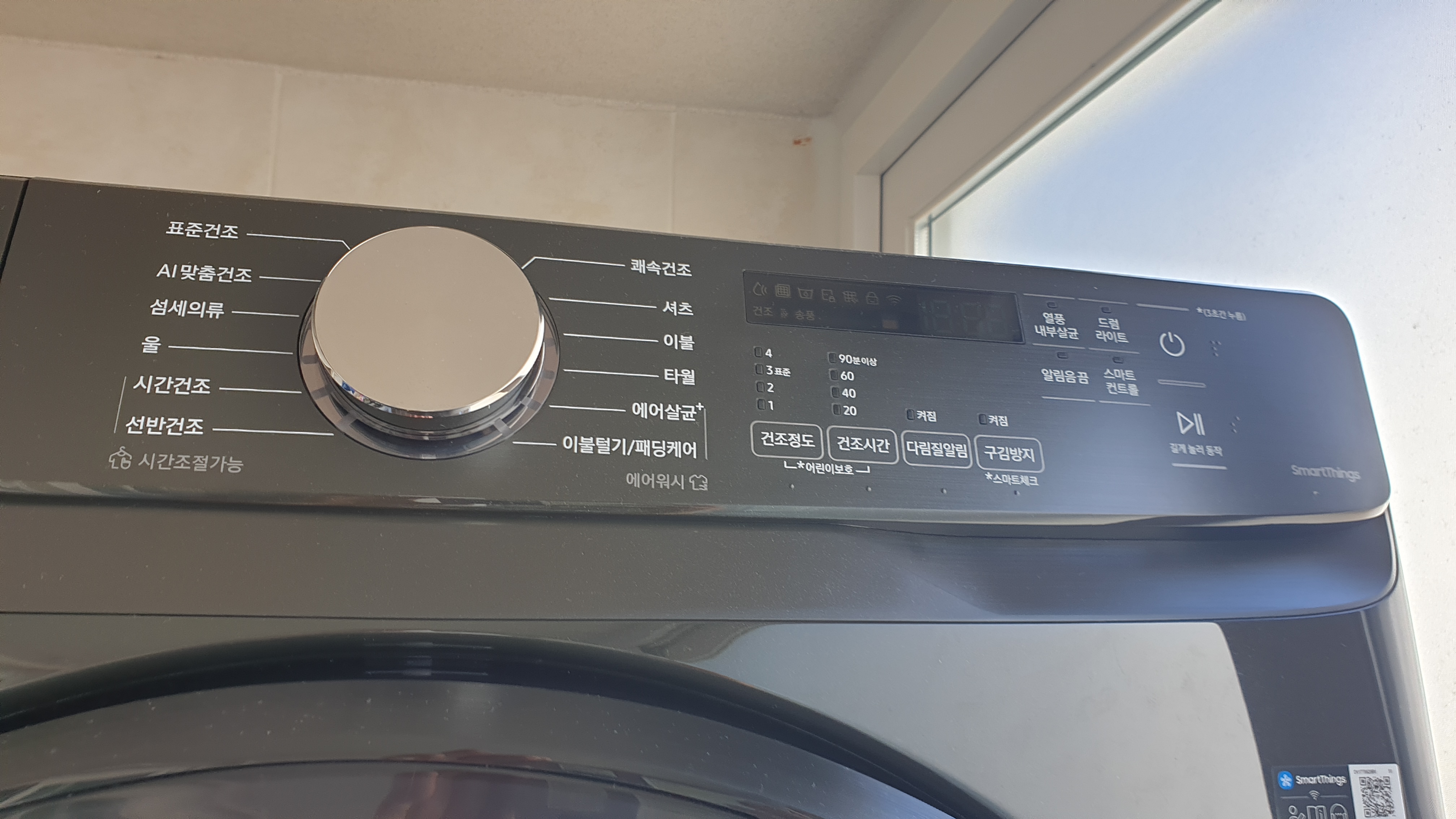 이번에 구입한 건조기가 최신 모델은 아니지만 4인 가족이 사용하기에 충분한 용량과 기능으로 부족함이 없다. 세탁기와 색이 완전히 같지는 않지만 같이 있어도 전혀 어색하지 않고 괜찮다.