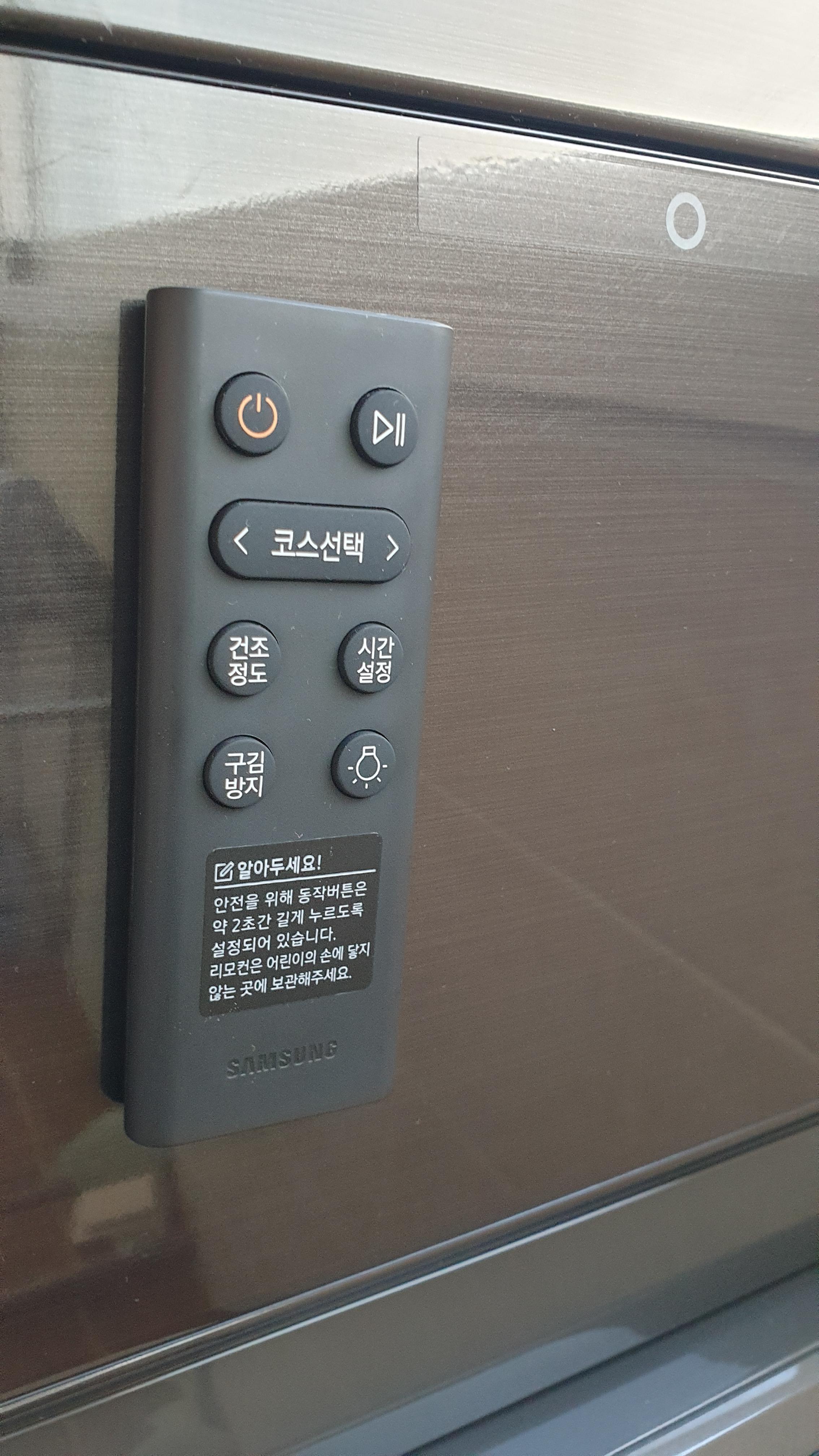 세탁기 위에 건조기가 있어 키가 작은 나에게는 조금 힘든데 이렇게 리모컨이 있으니 훨씬 편하게 사용 중이다. 팔을 쭉 뻗으면 본체 스위치도 사용 가능하다.