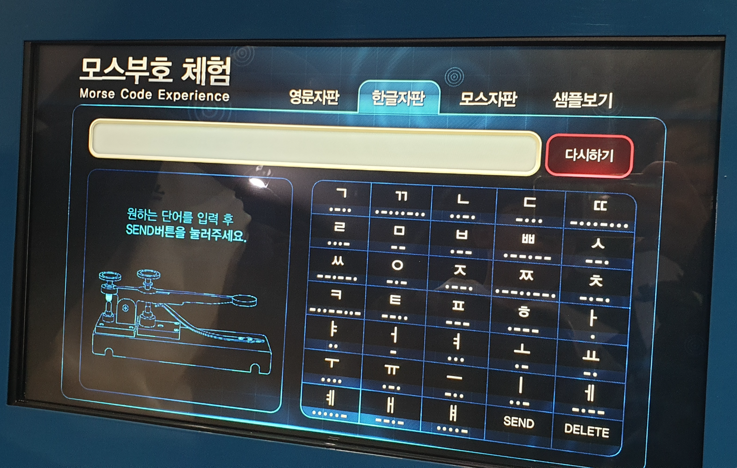 등대의 불빛을 보면서 직접 노를 젓기도 하고 모스부호 체험도 할 수 있는데 직접 입력하면 앞에 있는 커다란 화면에 나오는 체험도 있다.