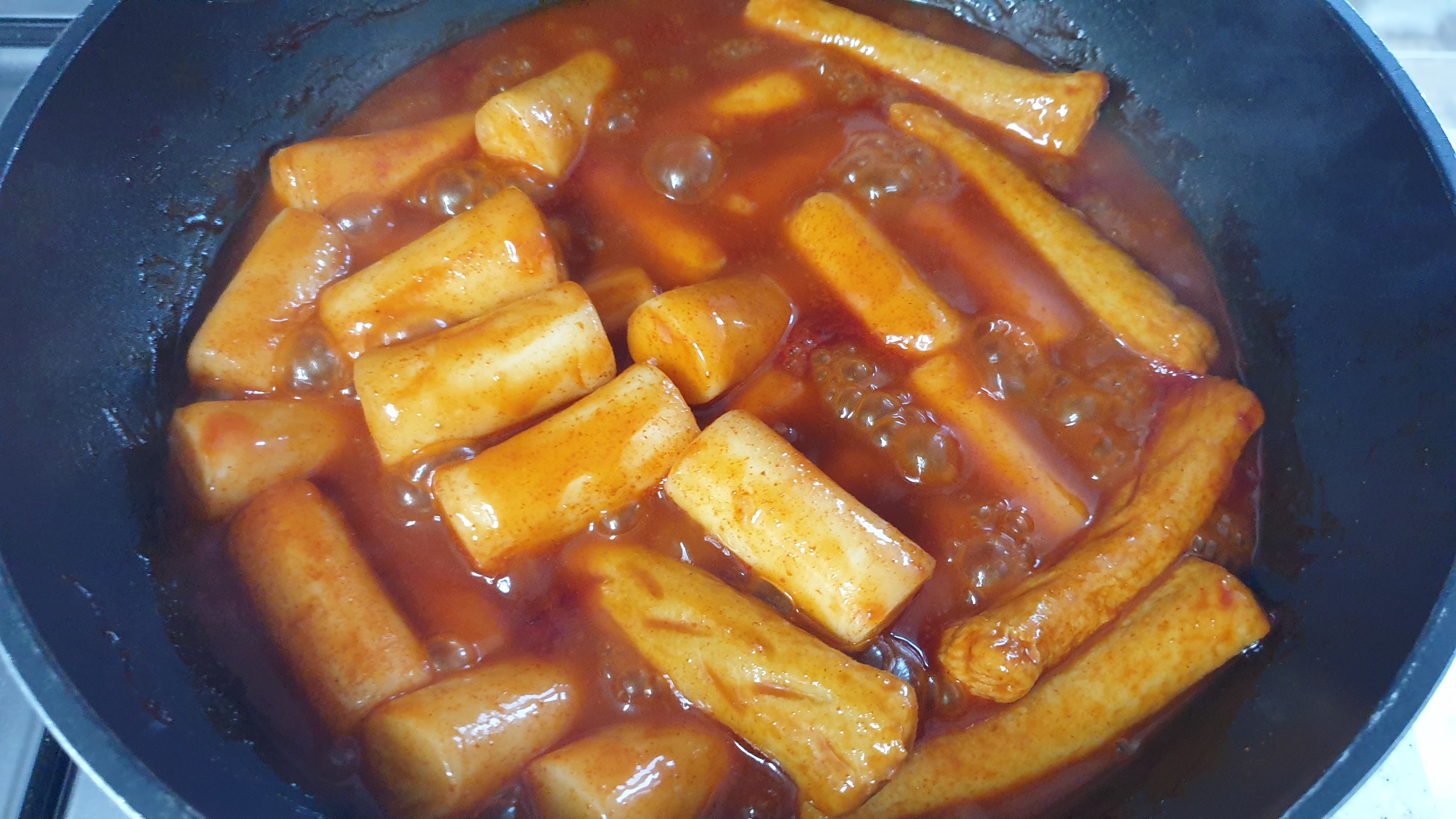 3. 국물이 중심부까지 보글보글 끓으면 2분 조리 후 중불로 줄여 양념이 꾸덕해질 때까지 3~5분 정도 잘 저어주며 끓인다.
