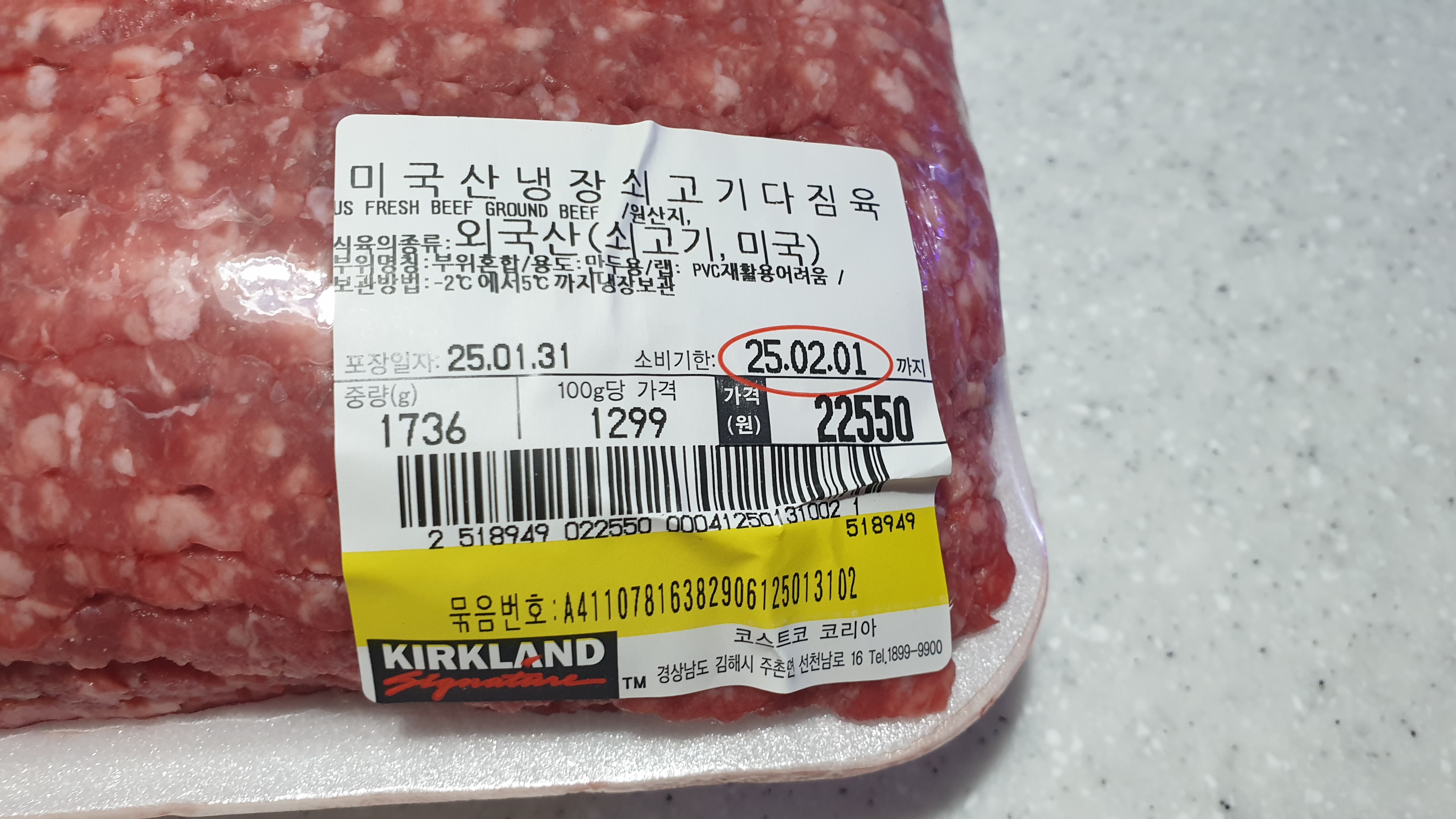 미국산 소고기 다짐육 1736g 22550원( 100g당 1299원)