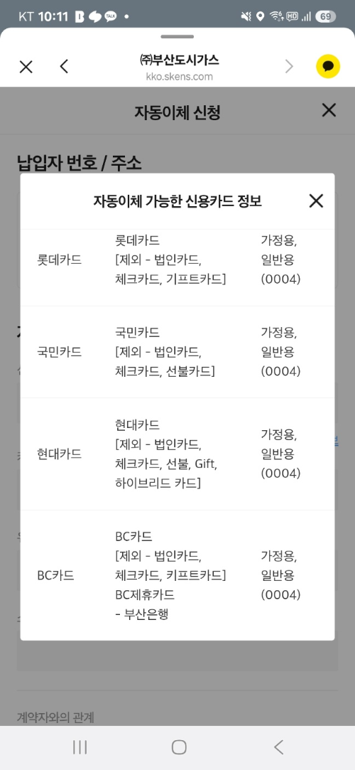 새로운 카드로 자동이체를 신청하는 동안 도시가스 신청에서 좀 어려움이 있었다. 분명히 카톡에서 쉽게 가능하다고 했는데 bc카드만 문제가 있었다.
