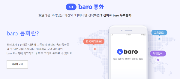 - baro 통화로 모든 로밍 통화 데이터 차감 없이 완전 무료