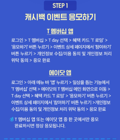 * T 멤버십 앱 또는 에이닷 앱 중 한 곳에서만 응모 완료하시면 정상 응모됩니다.