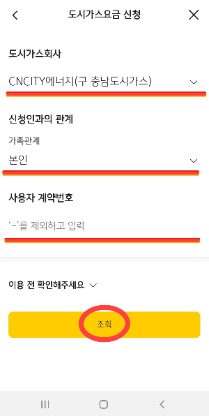 도시가스 요금 자동이체를 신청한다면 도시가스 요금 신청하기를 누르고 도시가스 회사를 설정하고 관계를 설정하고 도시가스청구서에 있는 납입자 번호를 사용자 계약번호에 작성하고 조회하기를 눌러 신청을 하시면 간단하게 완료가 됩니다.