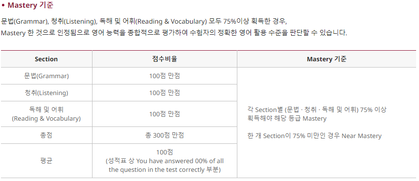 * IBT로 기록되는 정기시험은 편지에 따라 PBT(Paper Based Test)로 기록될 수 있습니다.