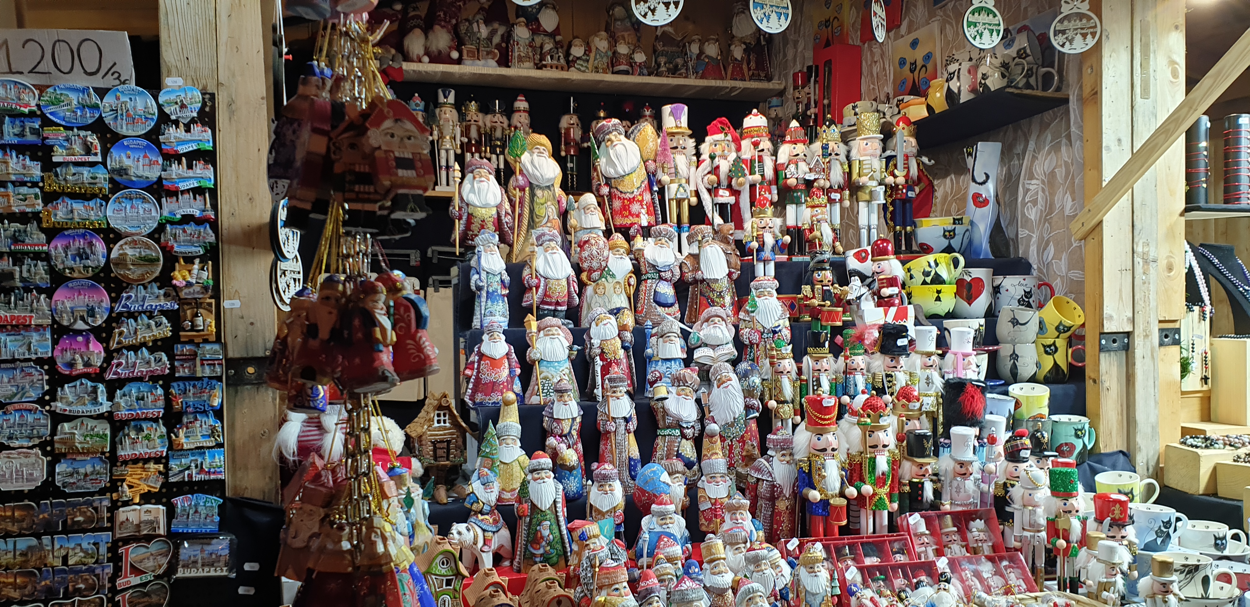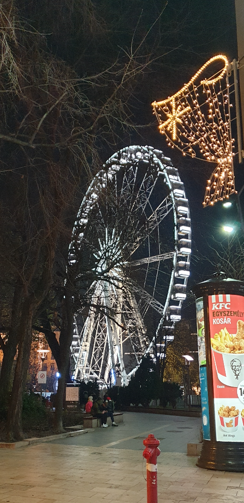 마켓에는 먹거리, 장식품 등 여러가지가 있었지만 현지 거주자에 의하면 가격이 매우 비싸다고 합니다. 저녁 식사를 마치고 바로 나온 거라서 뭘 먹고 싶지는 않았고 크리스마스 관련 장식품이나 수공예품등 새로운 문화와 처음 보는 것들을 구경하느라 바빴습니다. 말린 과일과 약재 같은 것들을 엮어 놓은 것이 예뻐서 보고 있었는데 이게 뱅쇼(핫 와인)를 만드는 재료라고 합니다. 지나다가 부다페스트의 눈이라고 불리는 대관람차도 봤는데 무척 빨라 보였습니다. 우리는 그냥 사진만 한 컷 찍고 지나갔습니다.