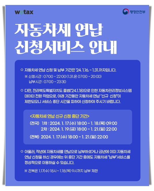 Wetax 위택스 자동차세 연납신청 전용 서비스 간소화페이지